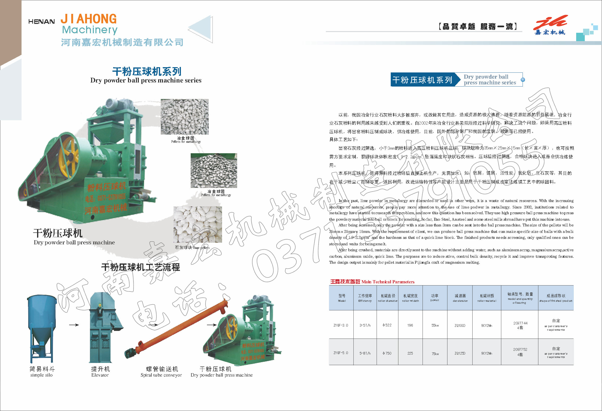 干粉壓球機(jī)可以將石灰粉料壓制成球,供冶煉使用,具體工藝如下: